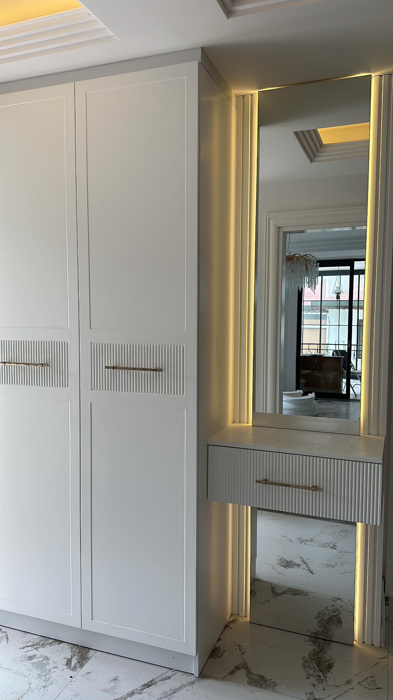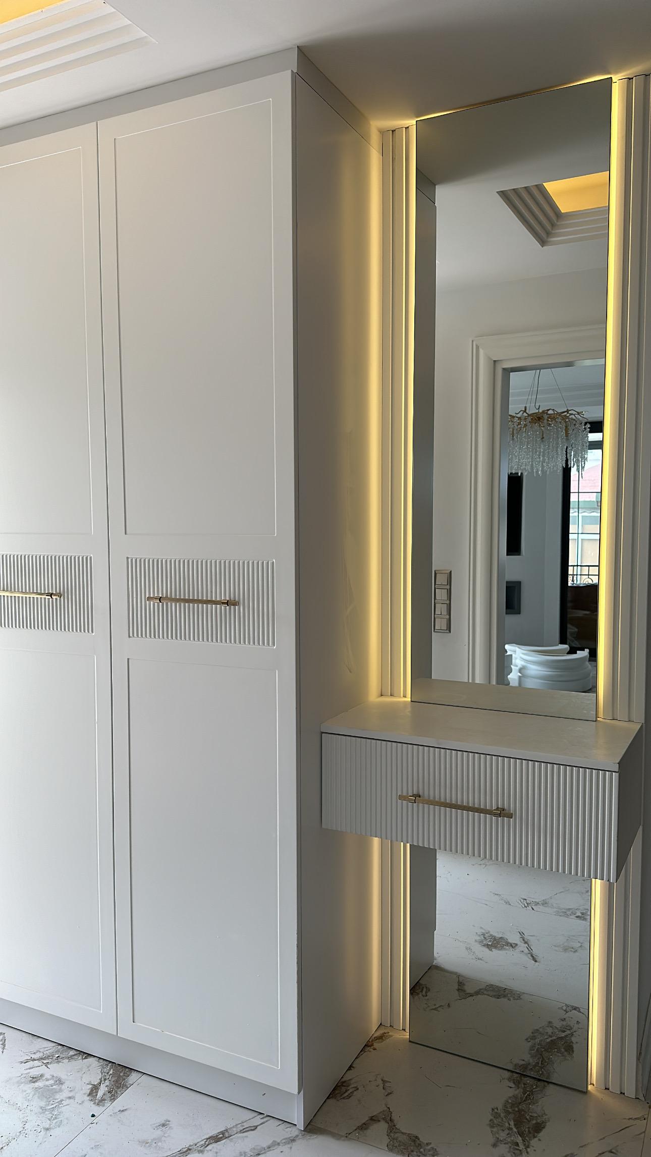 E.A Evi projesinde, yaşam alanının tüm iç dekorasyonu tarafımızca anahtar teslim olarak gerçekleştirilmiştir. Mobilya, seramik uygulamaları, yatak odası, dolap sistemleri ve tüm iç mekân detayları bütüncül bir tasarım anlayışıyla yenilenmiştir.