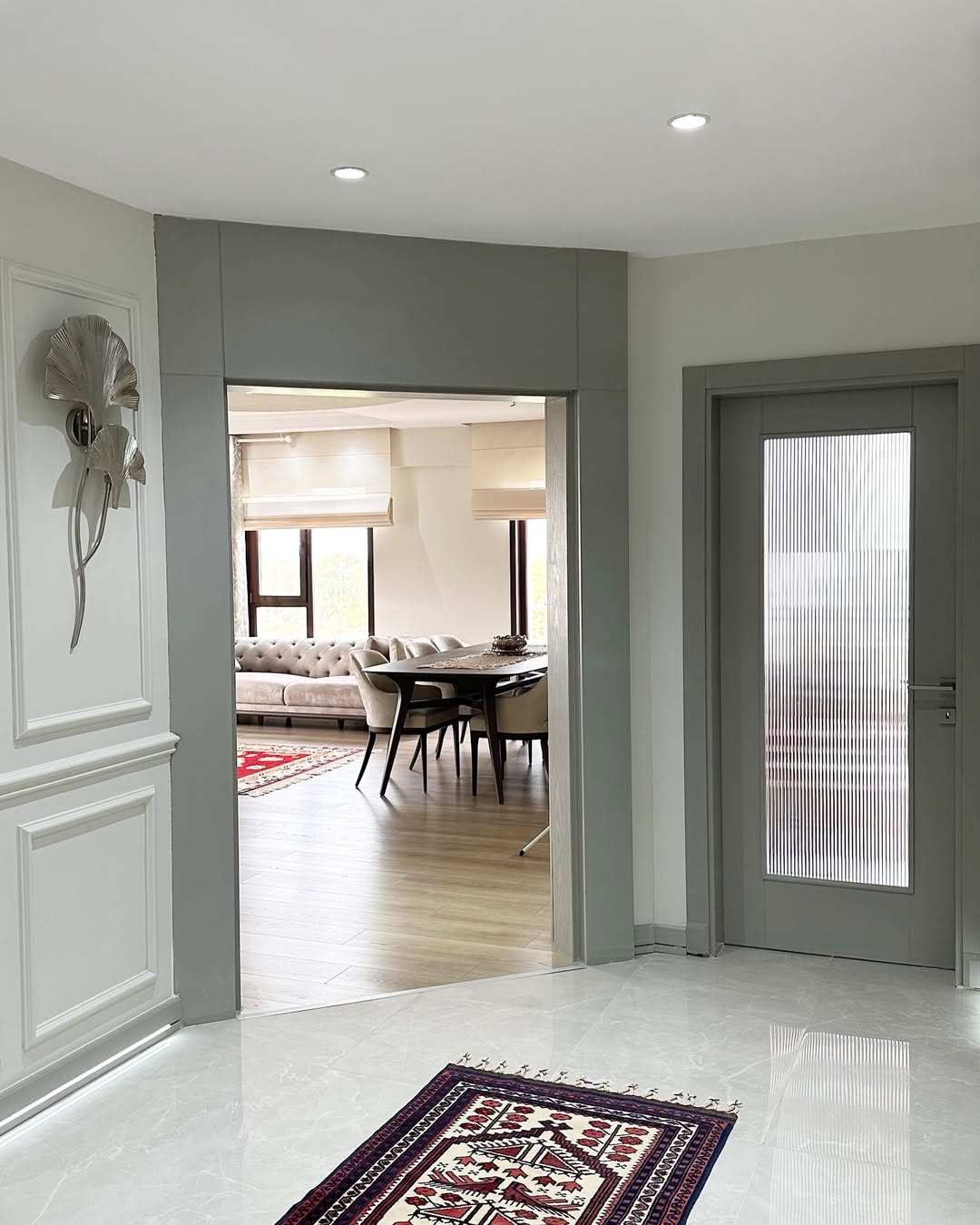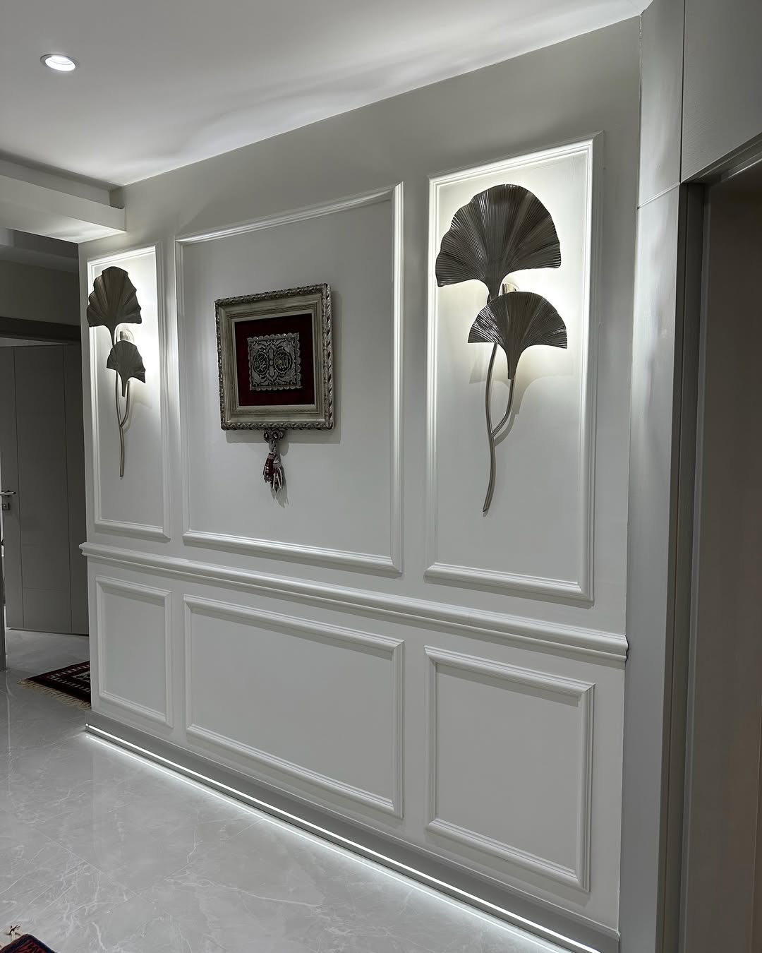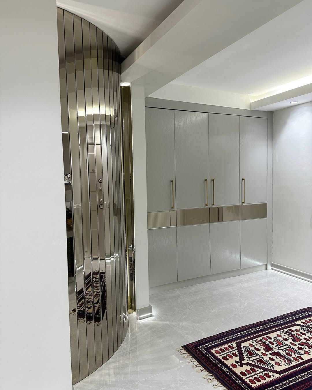 Her detayında el işçiliği ve özel malzeme kullanımıyla öne çıkan bu proje, yalnızca bir yaşam alanı değil, aynı zamanda sanatsal bir atmosfer yaratıyor. Gold eskitme yüzeyler; duvar, kapı, korkuluk ve dekoratif detaylarda kullanılarak mekana derinlik, karakter ve prestij katıyor.